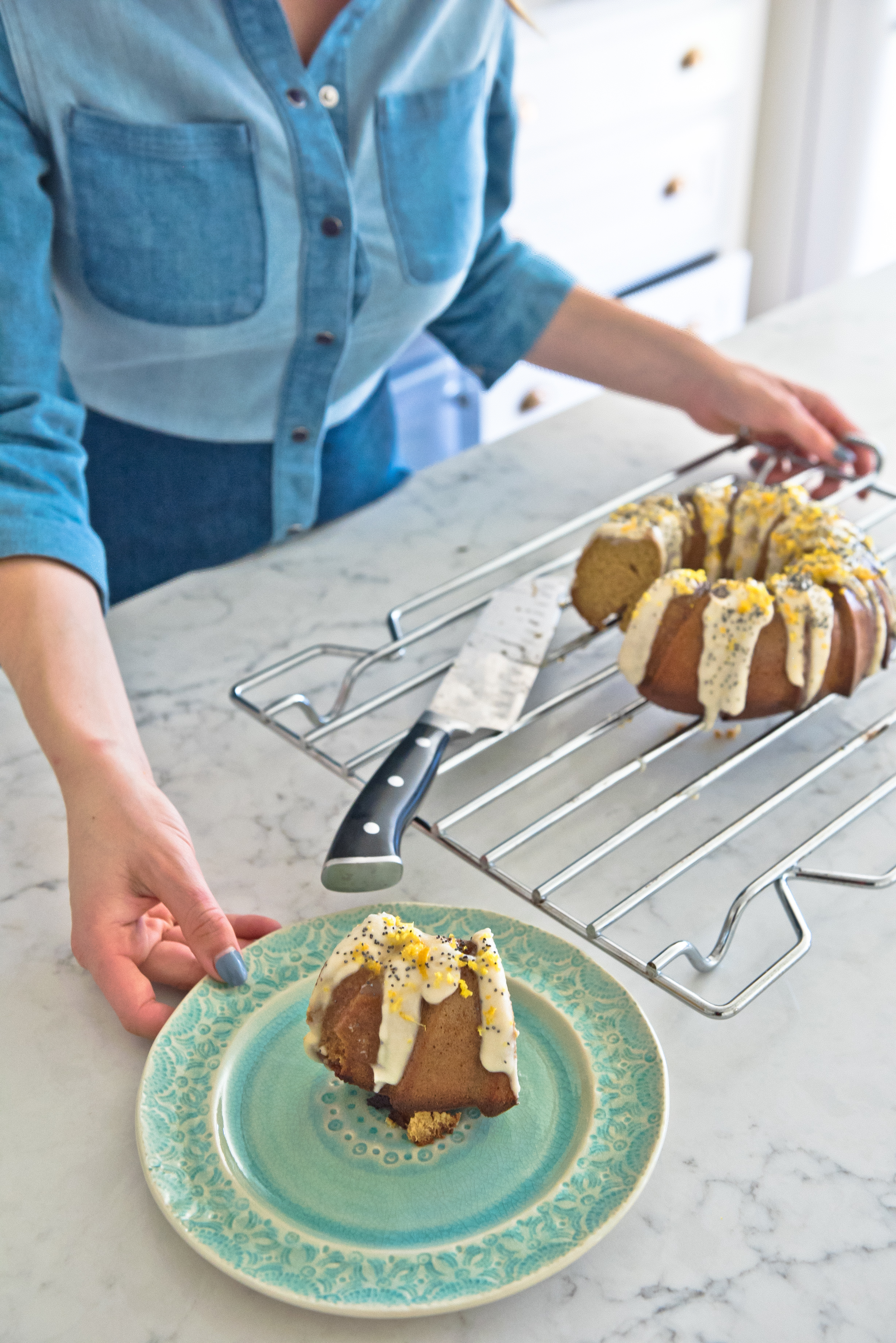 Step 6: Once the cake is fully baked, remove from the oven and let cool for 5 minutes before removing from the mold and placing on a cooling rack. After the cake has fully cooled add the icing. As the icing is fairly runny I recommend placing a baking sheet underneath the cooling rack and pouring the icing over so any excess drops through. Dress with orange zest and poppy seeds, and you’re ready to serve.